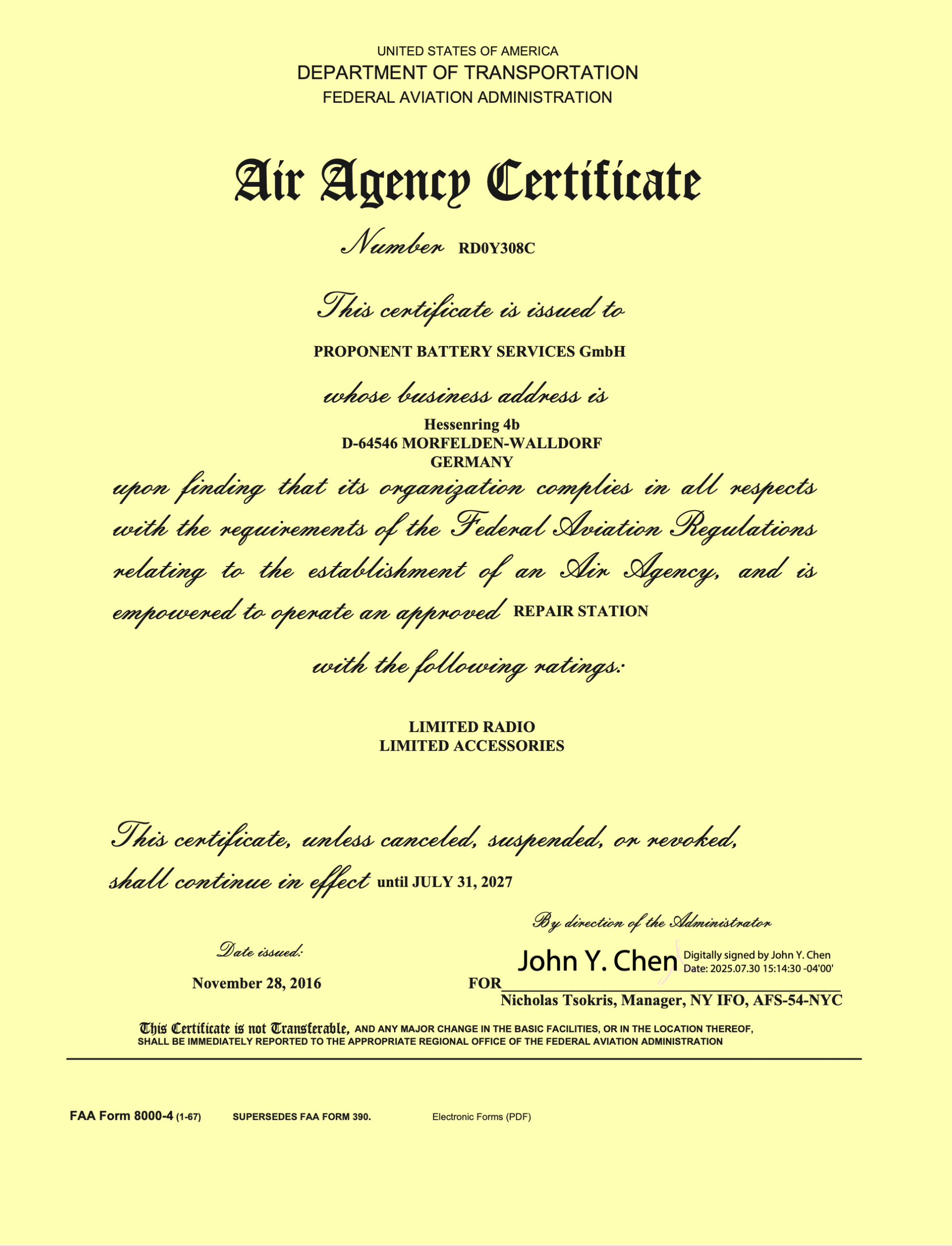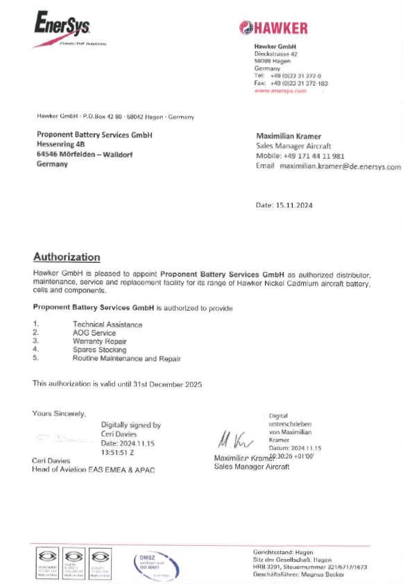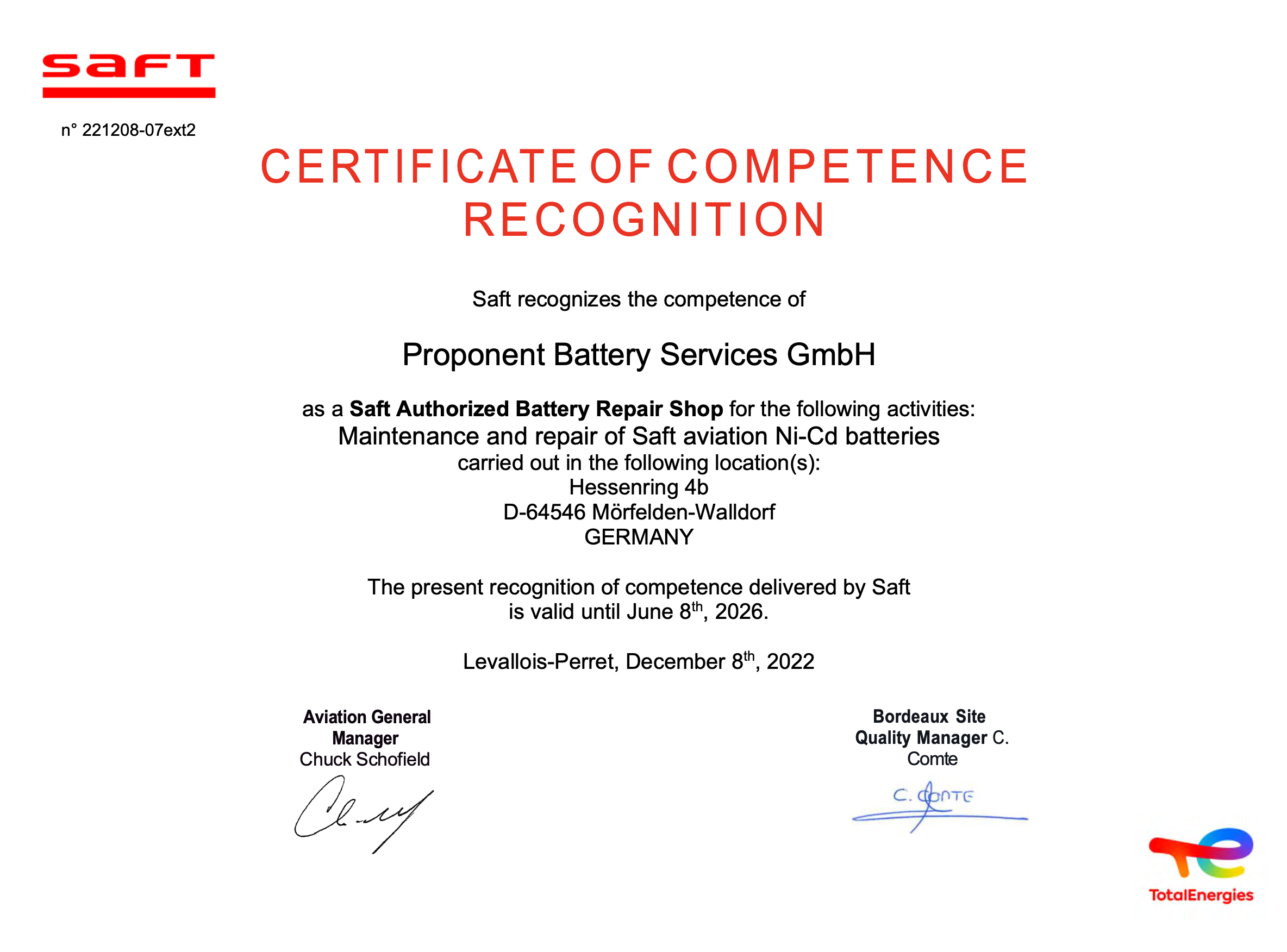 Saft is the premier battery supplier to the aviation industry, producing advanced technology batteries for all types of civil and military aircraft. As partner from SAFT we are also able to support you in all questions to Li-Ion Batteries and offer you maintenance for the Li-Ion Batteries from Saft.